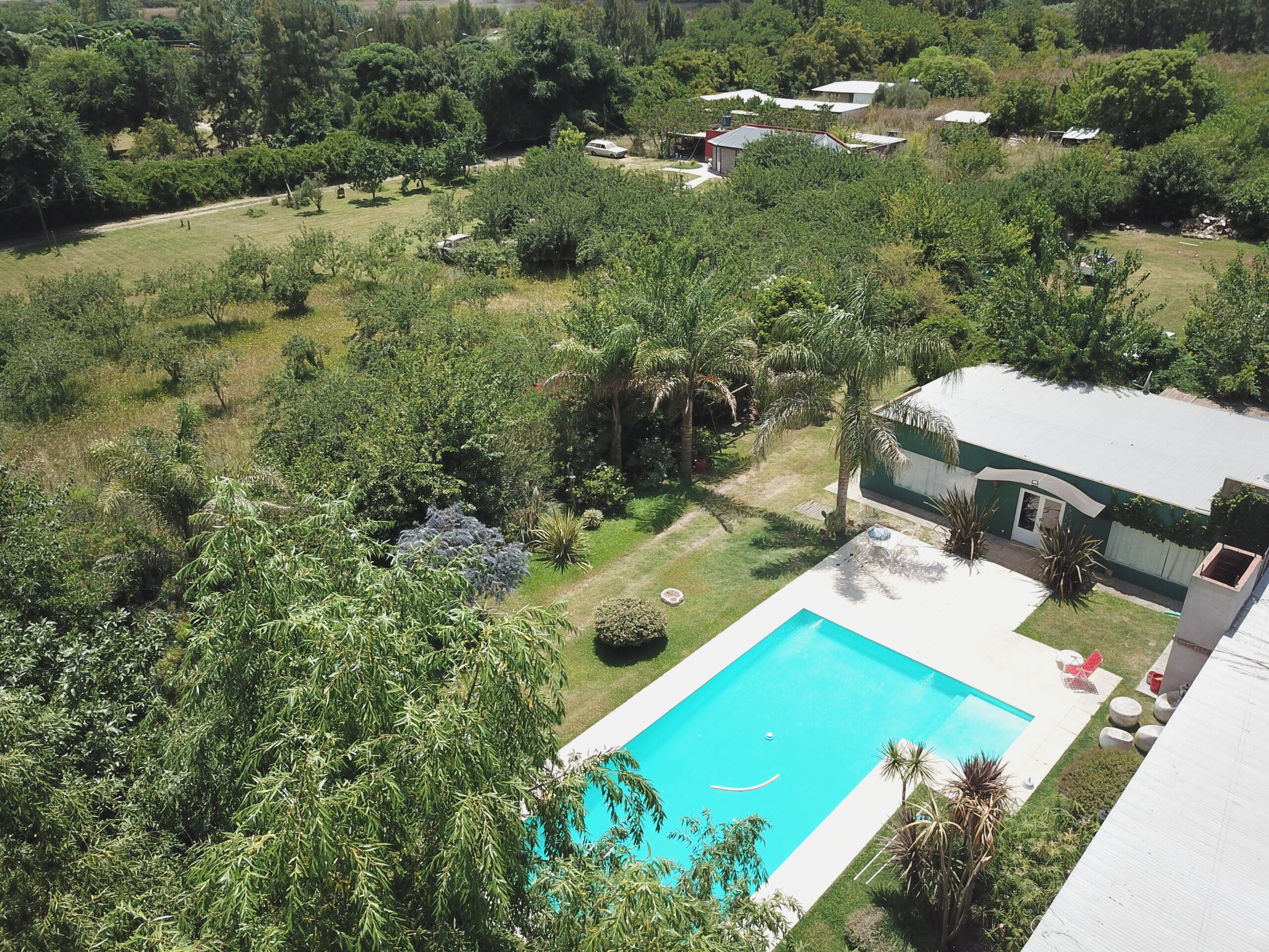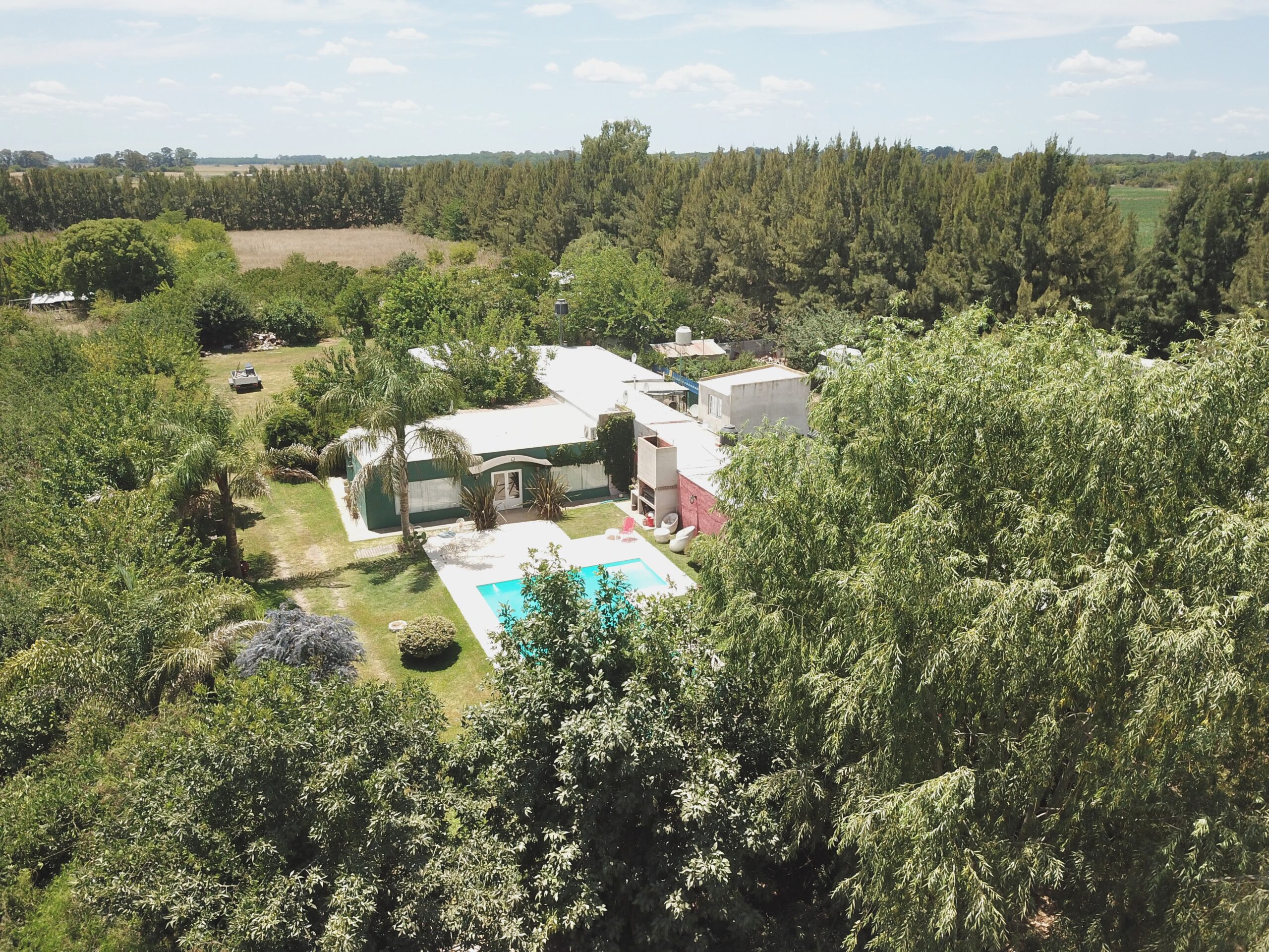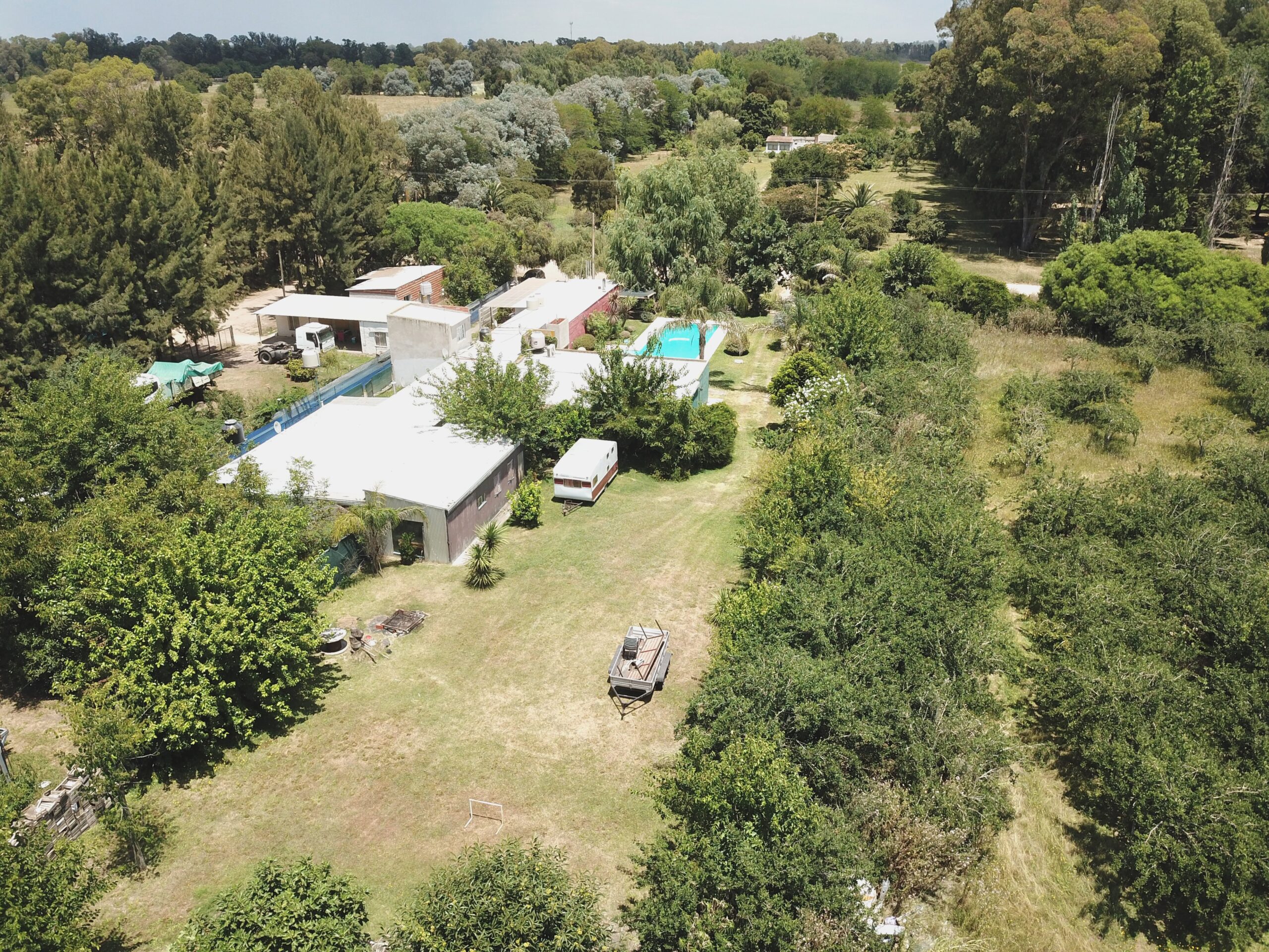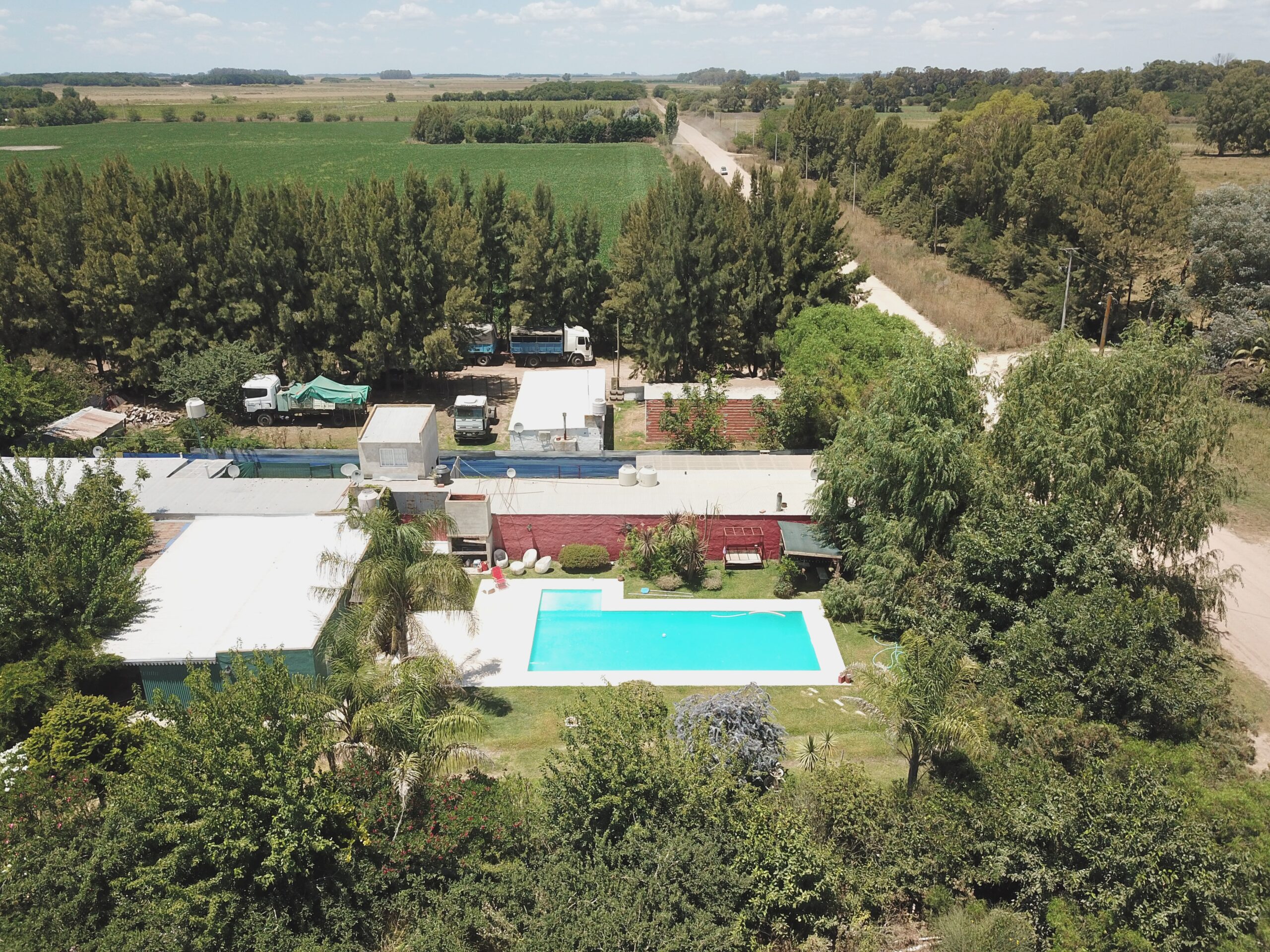 Conformada por un amplio estar / comedor, cocina separada, 3 dormitorios, 1 baño, y galpón, parrilla. Lo que destaca a la propiedad es su piscina de 12 por 5 con solarium de 2 por 2, y una excelente variedad de arboleda y forestación.