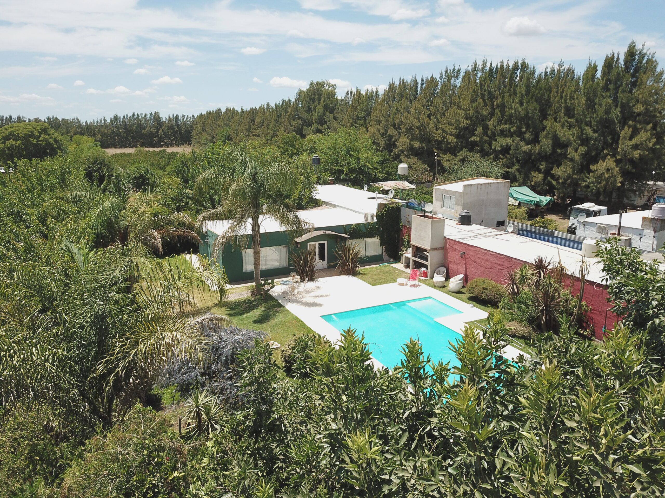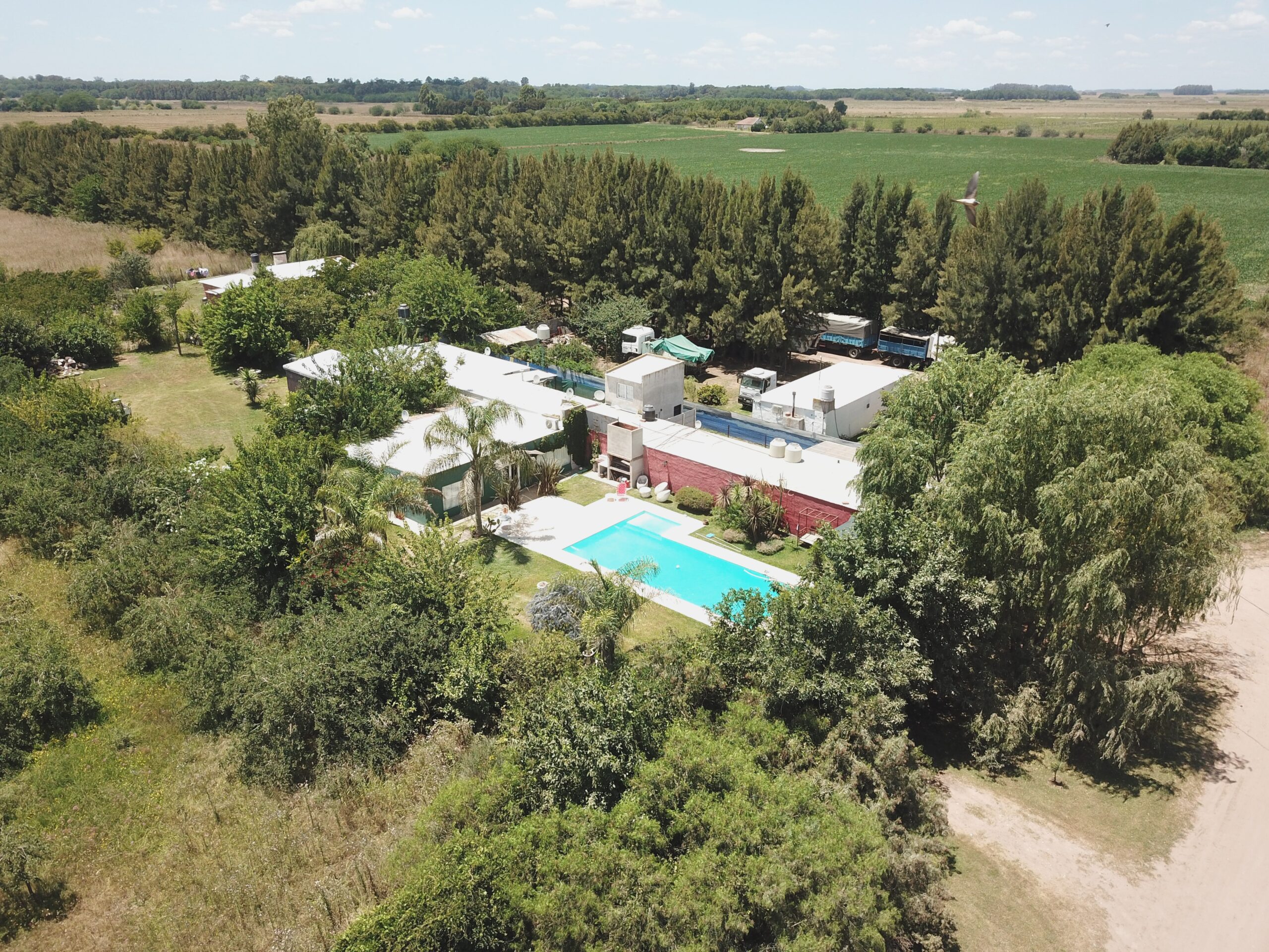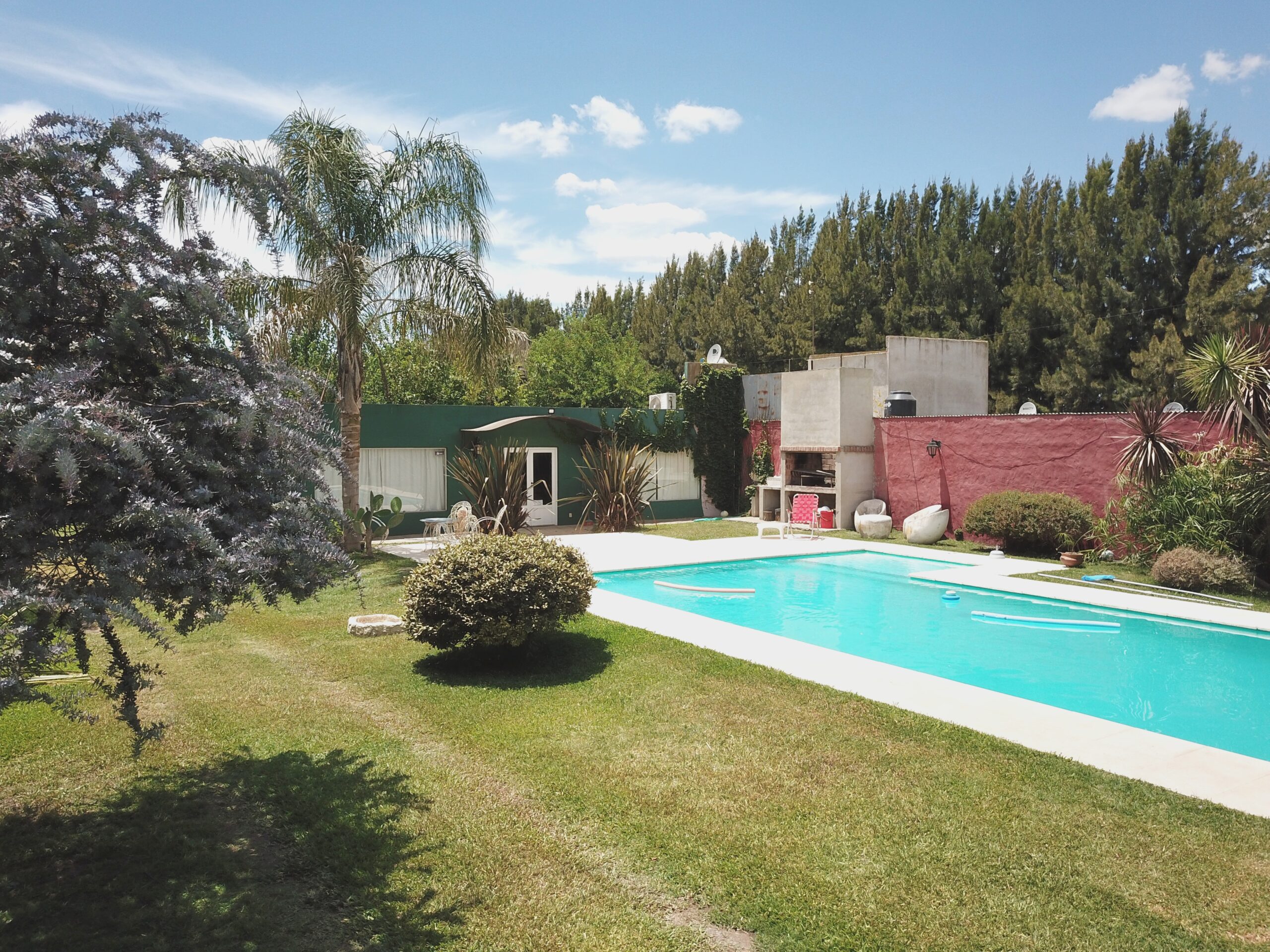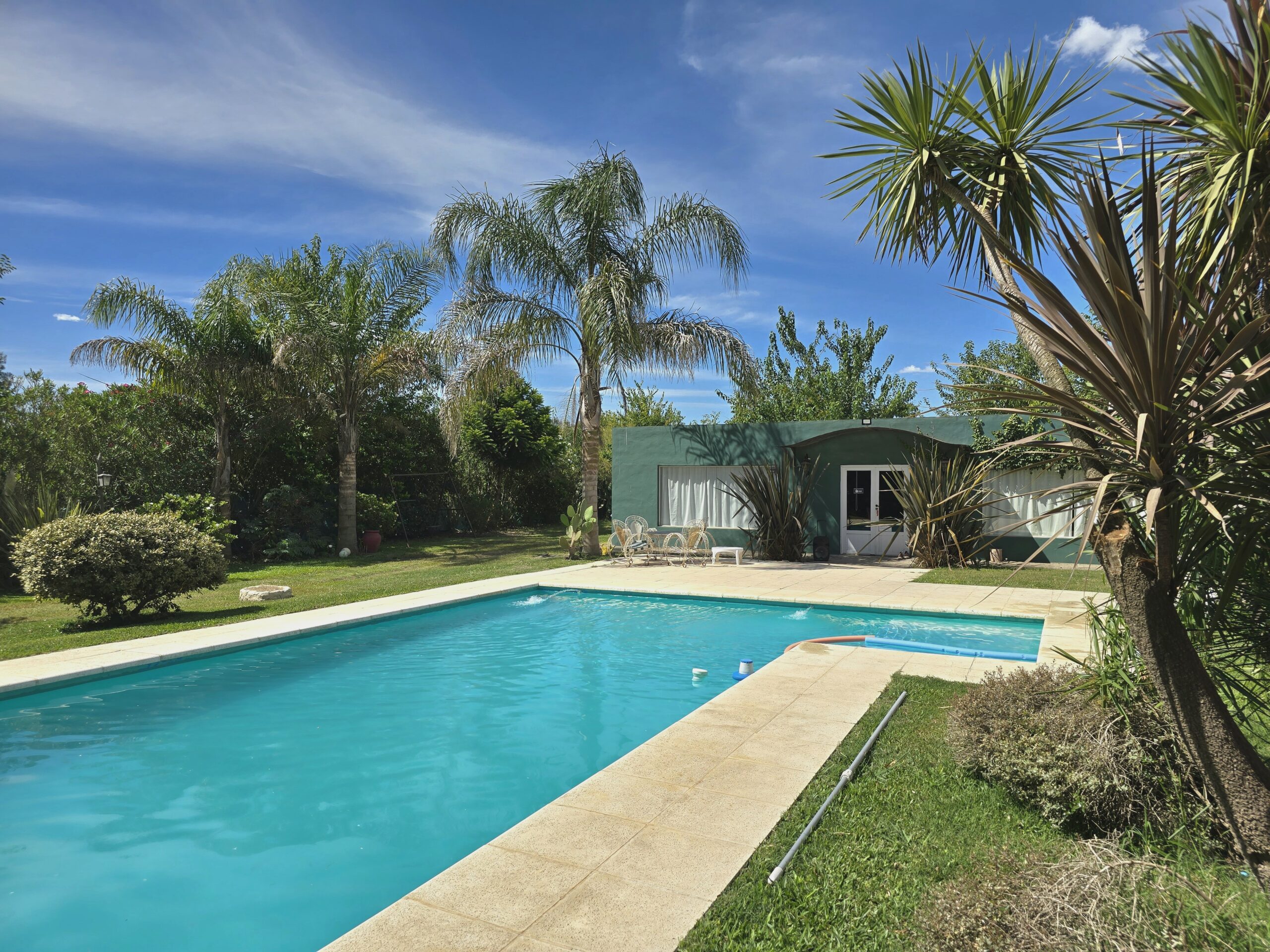 Conformada por un amplio estar / comedor, cocina separada, 3 dormitorios, 1 baño, y galpón, parrilla. Lo que destaca a la propiedad es su piscina de 12 por 5 con solarium de 2 por 2, y una excelente variedad de arboleda y forestación.