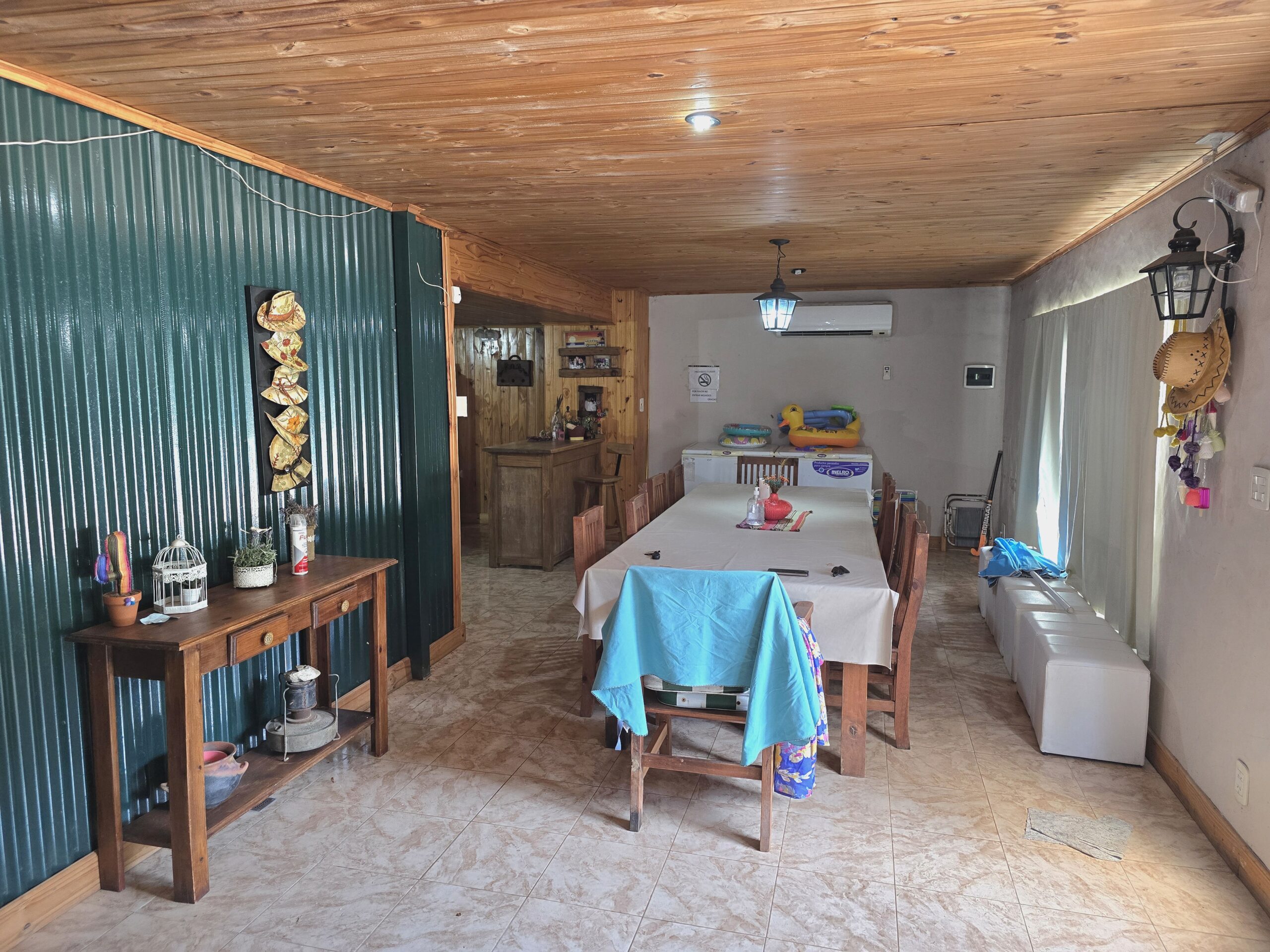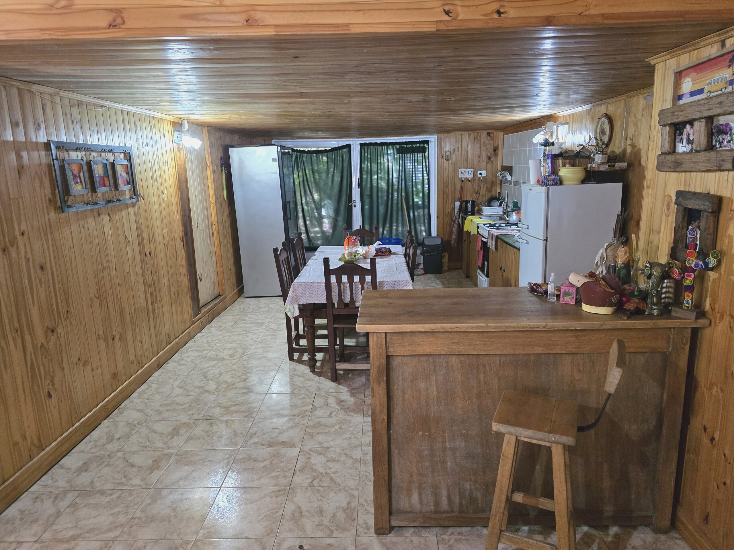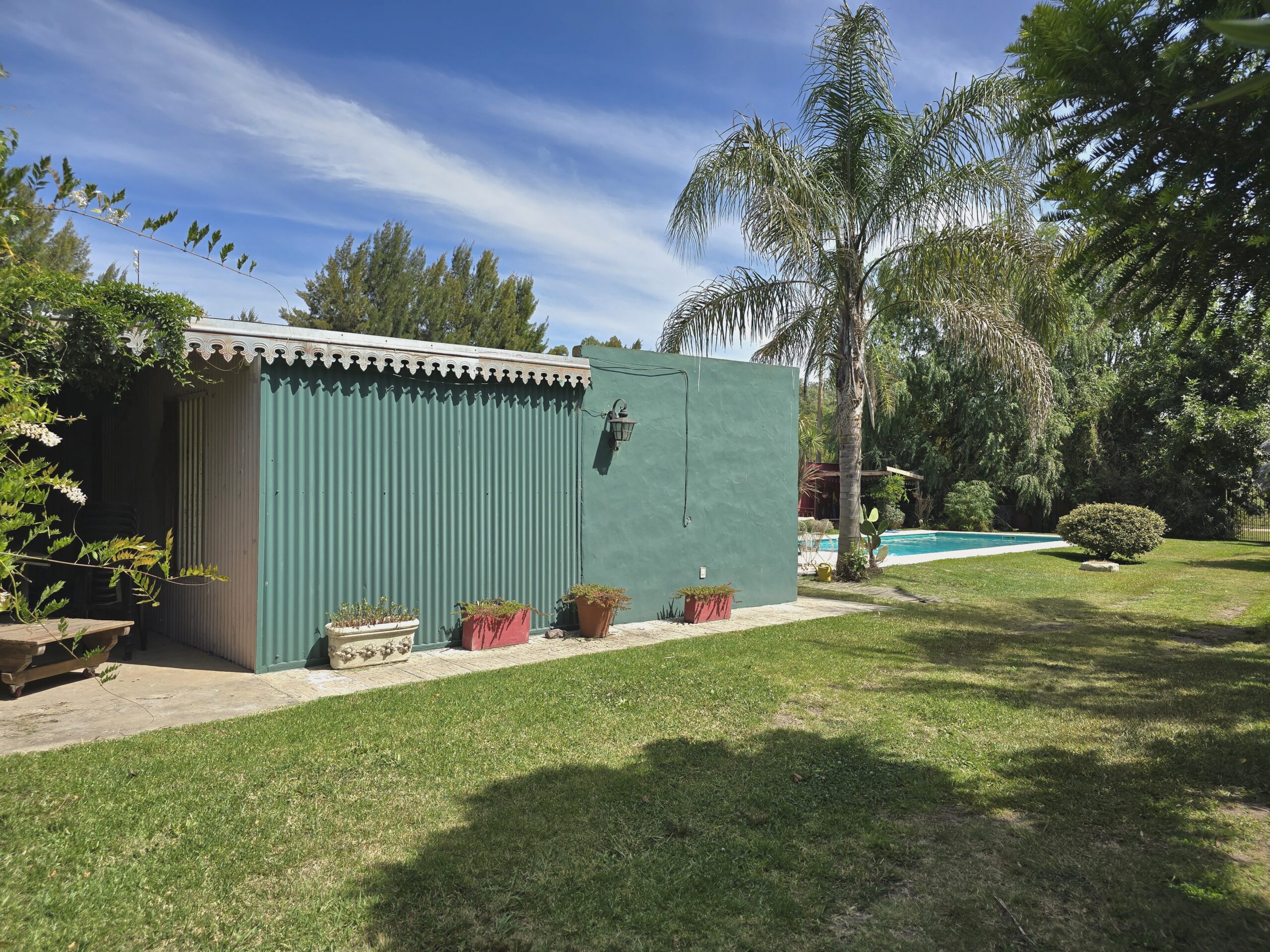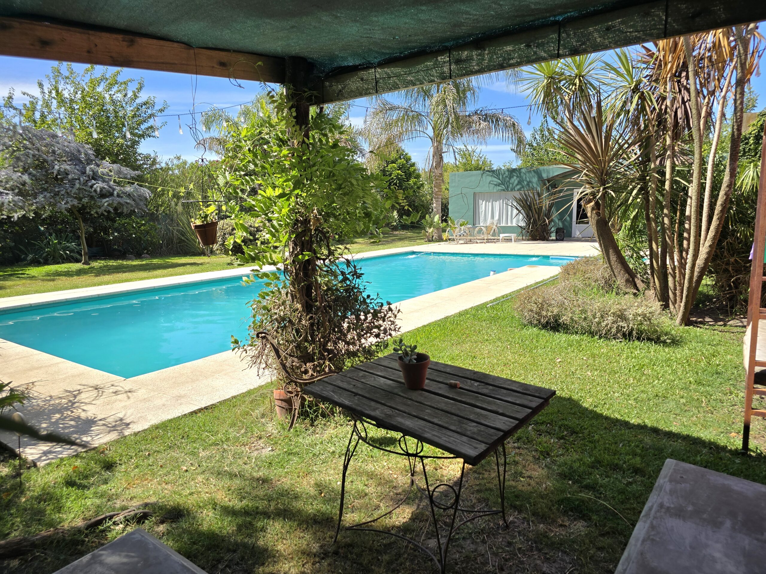 Conformada por un amplio estar / comedor, cocina separada, 3 dormitorios, 1 baño, y galpón, parrilla. Lo que destaca a la propiedad es su piscina de 12 por 5 con solarium de 2 por 2, y una excelente variedad de arboleda y forestación.